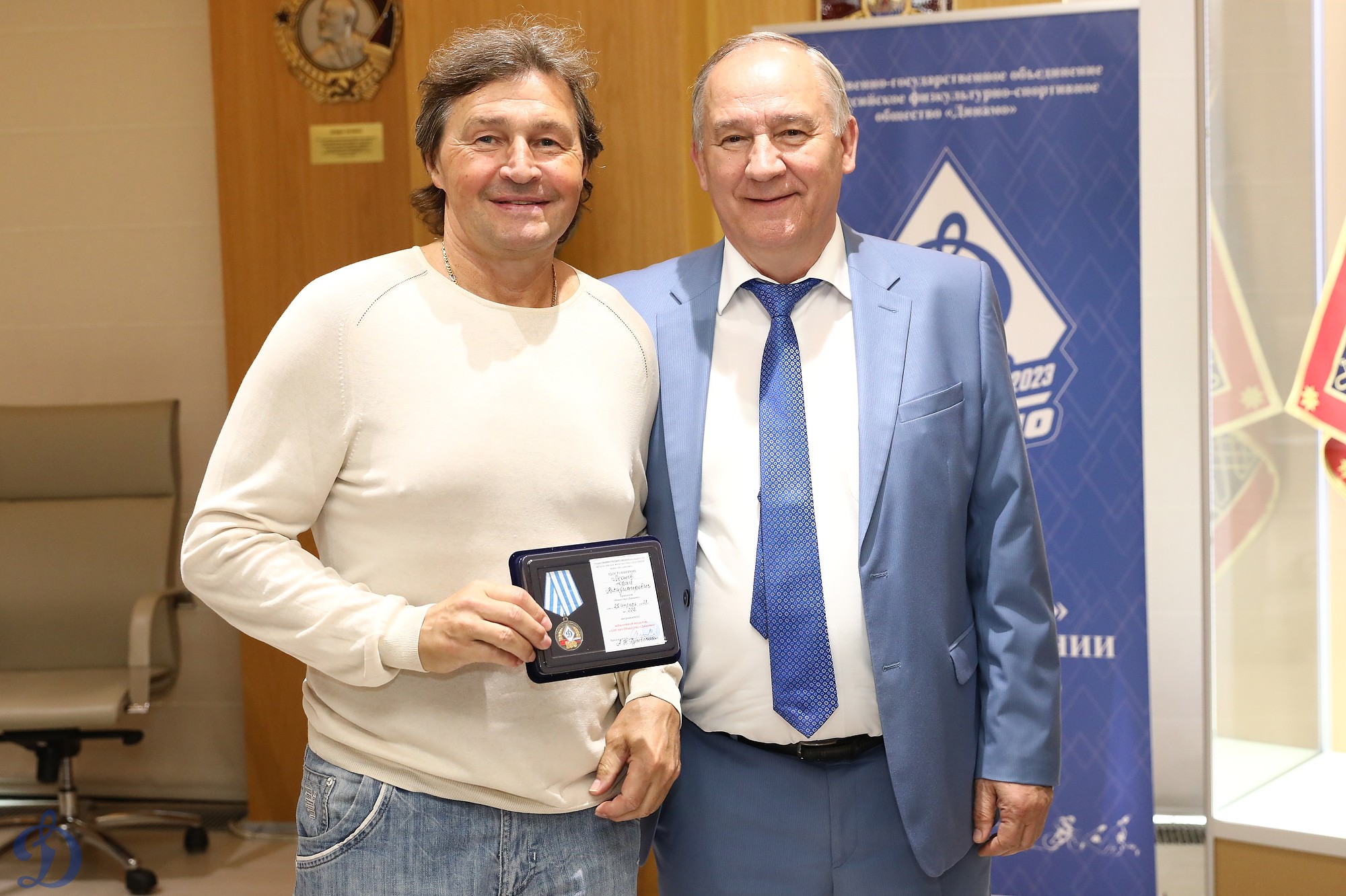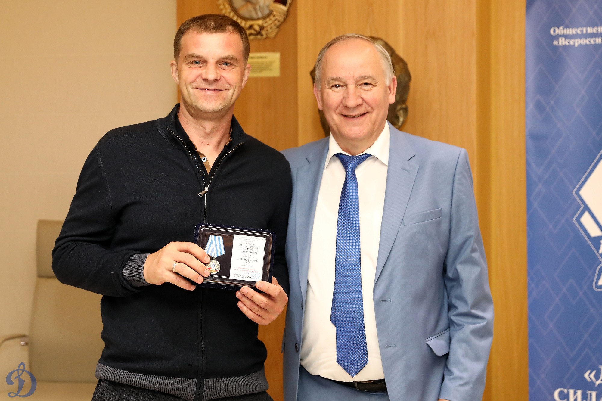 Награждение ветеранов бело-голубых памятными наградами в честь 100-летия общества «Динамо»