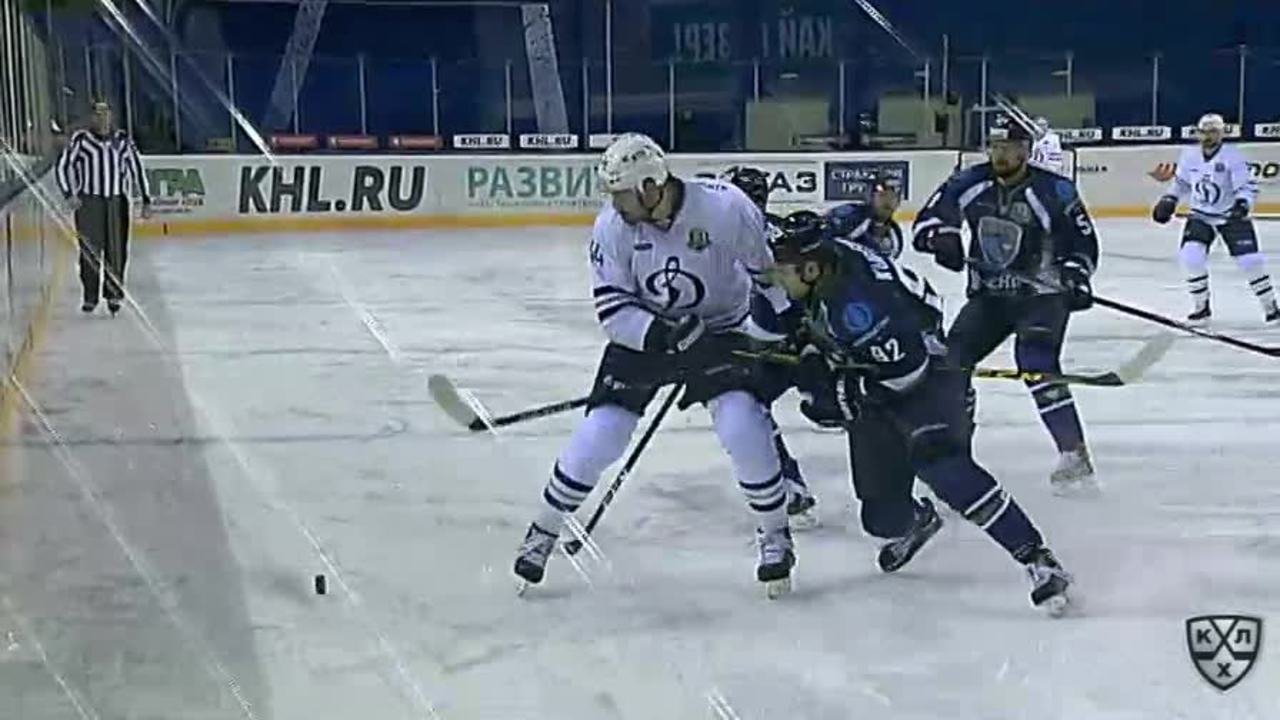 Удаление. Карсумс Мартиньш (ХК Динамо М) наказан малым штрафом за атаку игрока, не владеющего шайбой
