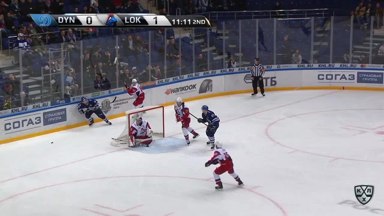 Удаление. Евгений Артюхин (Динамо) удалён на 2 минуты за атаку игрока, не владеющего клюшкой