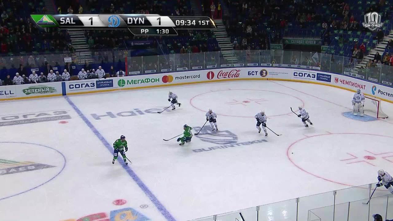 Сэйв. Иван Бочаров (ХК Динамо М) блином отводит угрозу от своих ворот