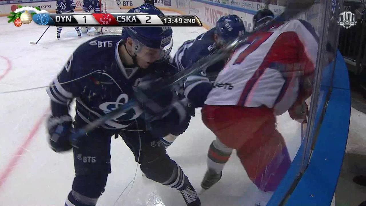 Удаление. Иван Телегин (ЦСКА) получил 2 минуты за атаку игрока, не владеющего шайбой