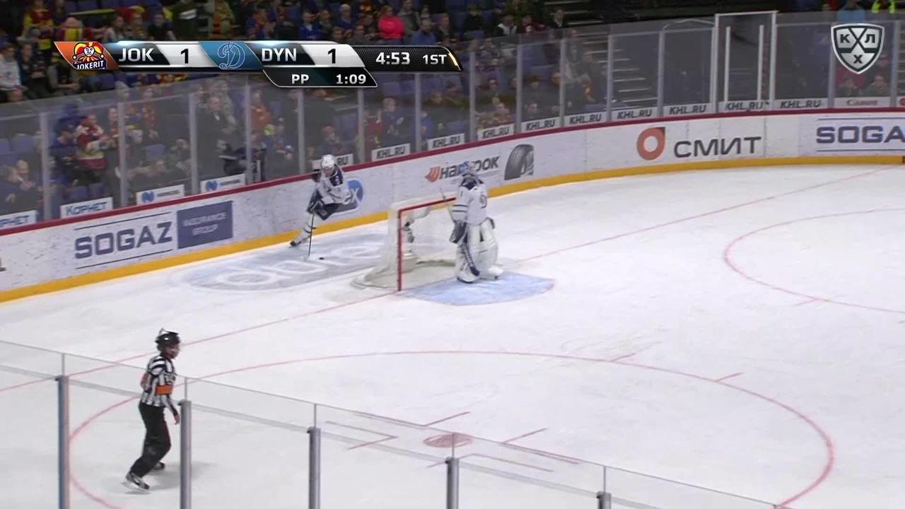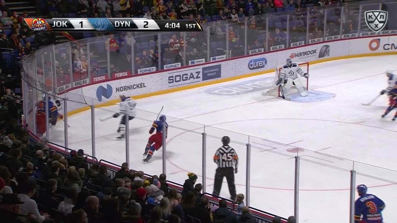 Шайба едва не залетает в ворота москвичей