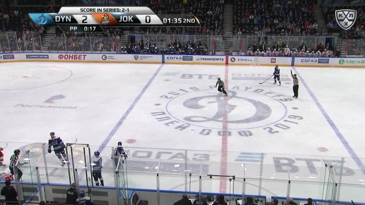 Удаление. Йоэнсуу Ессе (Йокерит), Лёв Виктор (Йокерит), Шипачёв Вадим (Динамо М) и Никулин Илья (Динамо М) за грубость